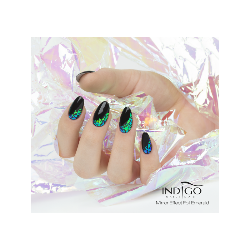 Emerald Mirror Effect Foil est une feuille scintillante qui donne l’effet d'une couleur transparente aux reflets verts-bleus sirène