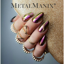 Het authentieke Indigo metallic effect zorgt voor een spectaculaire metaalglans op de nagels. Het is de perfecte oplossing voor een prachtige en tegelijkertijd eenvoudige manicure. Metaaleffecten voegen glans toe dankzij de minuscuul zichtbare deeltjes. Metal Manix® is verkrijgbaar in 6 buitengewone kleur – elk van hen maakt een bijzonder snelle stilering die de grootste sterren waardig is, mogelijk. Bestemd voor Sugar Effect of Paint Gel.