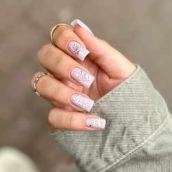 De transferfolie moet worden gebruikt met Paint Gel Black om juweelversieringen te maken, maar ook met folielijm om het motief over te brengen van het blad op de hele nagel.