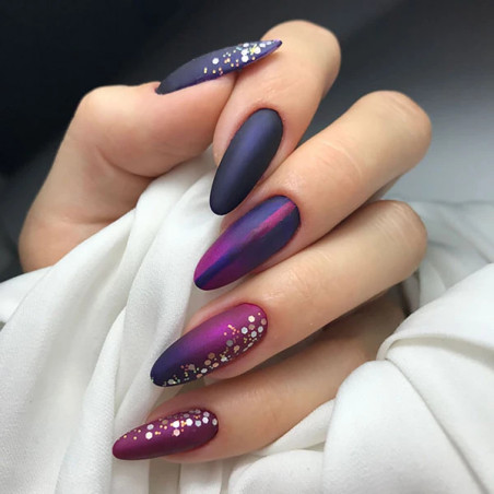 Zilveren hexagons zijn glanzende, veelhoekige zilveren ornamenten die elk nageldesign opfleuren.