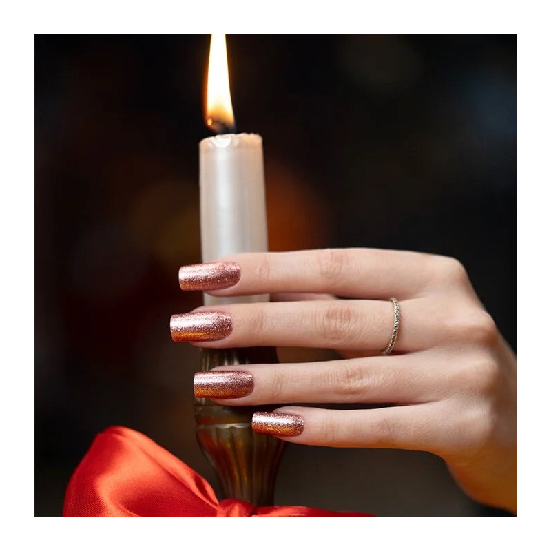 Elfira, uit de Winter 2024 Collectie, is een glitterende roze-gouden gelpolish die zachtheid en schittering combineert. De subtiele gouden tint, verrijkt met glitter, verlicht je nagels voor het winterseizoen. Elfira is gemakkelijk aan te brengen en langhoudend, perfect voor feestelijke manicures of verfijnde looks.